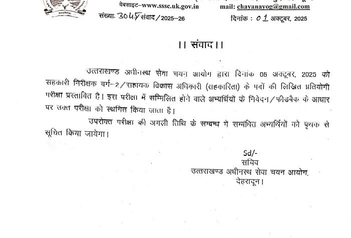 यूकेएसएसएससी की पांच अक्तूबर की परीक्षा स्थगित देहरादून। एक दिन पहले तक पूर्ण पारदर्शिता...