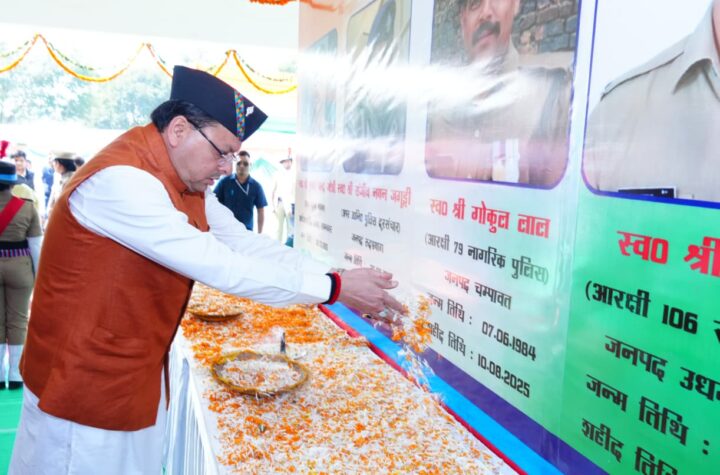 शहीद पुलिसकर्मियों को श्रद्धांजलि अर्पित करते मुख्यमंत्री। मुख्यमंत्री ने पुलिस स्मृति दिवस परेड के...