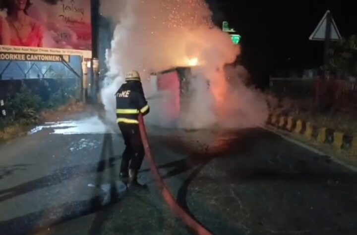 पिकअप वाहन में लगी भीषण आग, चालक ने कूदकर बचाई जान, हालत गंभीर ...