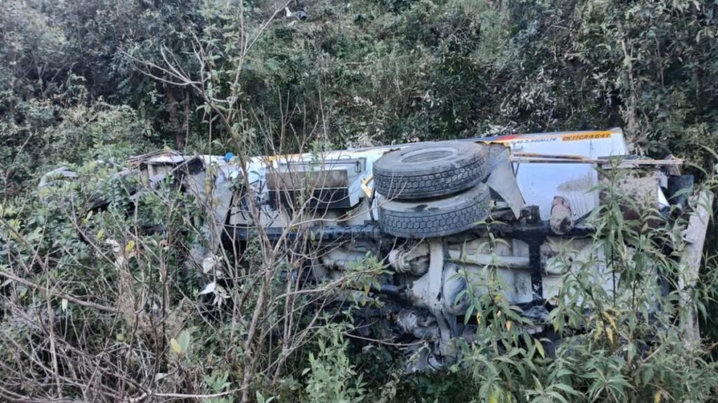 देहरादून, शनिवार की सुबह केम्पटी फॉल के पास पेट्रोल और डीजल से भरा एक ट्रक पेट्रोल पंप के ठीक सामने अचानक गहरी खाई में गिर गया। खाई में गिरते ही ट्रक के टैंक फट गए और डीजल-पेट्रोल का तीव्र रिसाव शुरू हो गया। जिससे इलाके में आग लगने का खतरा गहरा गया। घटना सुबह के समय की है, जब देहरादून से आ रहा ट्रक, जो पेट्रोल और डीजल से पूरी तरह भरा हुआ था, केम्पटी स्थित पेट्रोल पंप पर आपूर्ति के लिए रुका था। फिलहाल पुलिस घटना की जांच कर रही है।