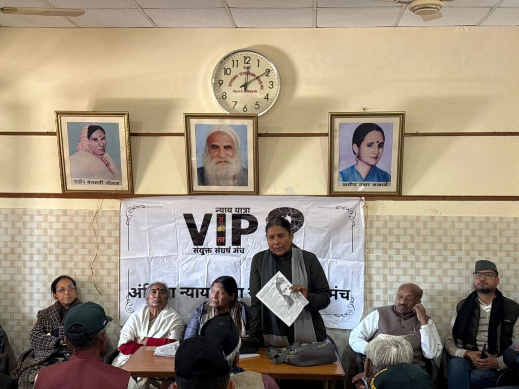 बैठक में बड़ी संख्या में युवाओं की उपस्थिति रही। युवाओं ने स्पष्ट चेतावनी दी कि यदि सरकार का यही रवैया रहा, तो उत्तराखंड में राजनीतिक परिवर्तन के लिए विकल्प तलाशना अपरिहार्य होगा। ऐसा न होने की स्थिति में 2027 में युवाओं के बीच भ्रम की स्थिति बनेगी, जिसका सीधा लाभ सत्ताधारी दल को मिलेगा। बैठक में यह भी तय किया गया कि महापंचायत में अंकिता न्याय से संबंधित बैनर-पोस्टर-झंडों को स्वीकार स्वीकार किया जाएगा। पूरी कार्यवाही महिलाओं, युवाओं, पूर्व सैनिकों और सक्रिय कार्यकर्ताओं से गठित संचालन समिति की देखरेख में संपन्न होगी। सभी राजनीतिक दलों द्वारा दिए जा रहे समर्थन और सहयोग की सराहना की गई। महिला संगठनों ने विशेष रूप से कहा कि राज्य में बढ़ती नशा संस्कृति, रिजॉर्ट संस्कृति और उत्तराखंड को “थाईलैंड” बनाने जैसी सोच को अब किसी भी सूरत में बर्दाश्त नहीं किया जाएगा। आज की बैठक में 32 संगठनों के प्रतिनिधि प्रत्यक्ष रूप से उपस्थित रहे, जबकि 11 संगठनों ने अनुपस्थित रहते हुए भी पूर्ण समर्थन और सहयोग के संदेश भेजे। बैठक की अध्यक्षता यशवीर आर्य ने की तथा संचालन निर्मला बिष्ट ने किया। बैठक का संयोजन कमला पंत द्वारा किया गया।