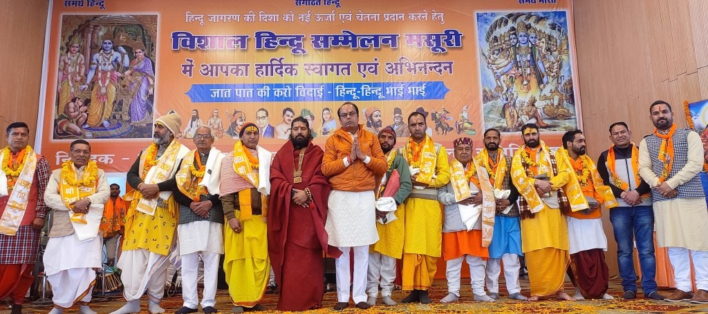 नगर पालिका टाउन हाल में आयोजित हिंदू सम्मेलन में मुख्य वक्ता महंत लोकेश दास ने कहा कि पूरे भारत में आरएसएस के स्थापना दिवस के मौके पर किया जा रहा है ताकि हिंदुओं को एक साथ ला सके व जाति में न बटें, सबको एक होकर रहना चाहिए ताकि सामाजिक समरसता बढ सके।जातियों में न बंटे। सभी ईश्वर की संतान है। जब भगवान ने कोई भेद भाव नहीं किया तो हम भी न करें। जिस तहर राम की जयंती मनाते है उसी तरह बाल्मीकि जयंती भी मनाये। ताकि पूरे भारत में संदेश जायैं संघ अपनी जगह कार्य करता है भाजा अपने स्तर पर कार्य करती है। जो देश धर्म के लिए कार्य करे हम उसके साथ है, हमें सेक्युलरों से खतरा है, हिंदु बनो या मुसलमान बनो लेकिन एक तरह रहे। हमें मौहम्मद दीपक की जरूरत नहीं है। भारत माता की रक्षा करना, हिदुओं की रक्षा व एकता के लिए कार्य करते है जबकि हमारे देश में कई गददार बैठे है। उन्होंने कहा कि इस मौके पर पालिकाध्यक्ष मीरा सकलानी ने कहा कि संघ ने सौ साल पूरे होने पर पूरे देश में हिदु सम्मेलन का निर्णय लिया था जिसके तहत यहां पर भी हिंदु सम्मेलन किया जा रहा है। नरेश जी ने जो संदेश दिया कि सभी को एकजुट होना है, यहां पार्टी विशेष की बात नहीं। सम्मेलन को विराट रूप दिया गया है जिसमें हर वर्ग की भागीदारी रही। उन्होंने कहा कि जो देश को नुकसान पहुचाने की कोशिश करेगा उसका विरोध किया जायेगा। उन्होंने कहा कि मसूरी जैसे छोट शहर में इतना बड़ा सम्मेलन आयोजित किया गया जिससे ऐसा लगा कि लोग सनातन संस्कृति को आगे बढाने का कार्य कर रहे हैं। इस मौके पर सामाजिक कार्यकर्ता निधि बहुगुणा ने भी अपने विचार व्यक्त किए। इस मौके पर शहर के विभिन्न वर्गों, के लोगों को भी सम्मानित किया गया। वहीं भजनों के आयोजन के साथ ही झुमैलो ग्रुप ने मां नंदा देवी राज जात यात्रा नृत्य नाटिका की मनमोहक प्रस्तुति दी। इस मौके पर नरेश, भाजपा मंडल अध्यक्ष रजत अग्रवाल, कार्यक्रम संयोजक मोहन पेटवाल, उपाध्यक्ष अरविंद सेमवाल, भाजपा प्रदेश मंत्री नेहा जोशी, भाजयुमो प्रदेश मंत्री आर्यन देव उनियाल, सहित बड़ी संख्या में हिंदू मौजूद रहे।